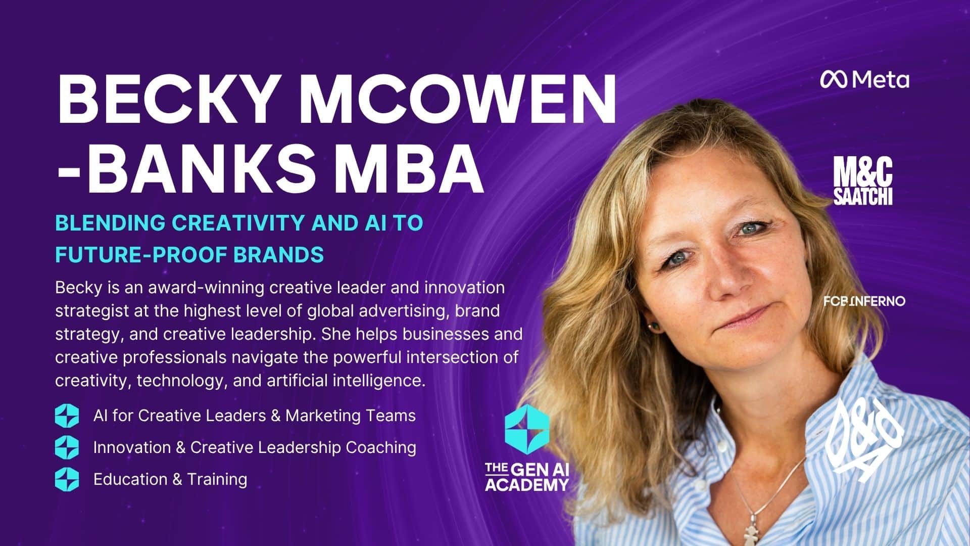 Becky McOwen-Banks è una pluripremiata leader creativa e stratega dell'innovazione che vanta decenni di esperienza ai massimi livelli nel campo della pubblicità globale, della strategia di marca e della leadership creativa. Con un ampio background di collaborazione con agenzie, grandi marchi e organizzazioni globali, Becky si concentra ora sull'aiutare le aziende e i professionisti creativi a orientarsi nel potente intreccio tra creatività, tecnologia e intelligenza artificiale.
