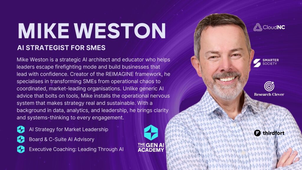 Mike Weston è uno stratega, educatore e architetto strategico di IA che aiuta i leader a smettere di essere i pompieri più costosi della loro azienda. Con decenni di esperienza nel campo dei dati, dell'analisi e della leadership, comprende i costi nascosti della gestione reattiva e il vantaggio competitivo che deriva dal liberarsene.