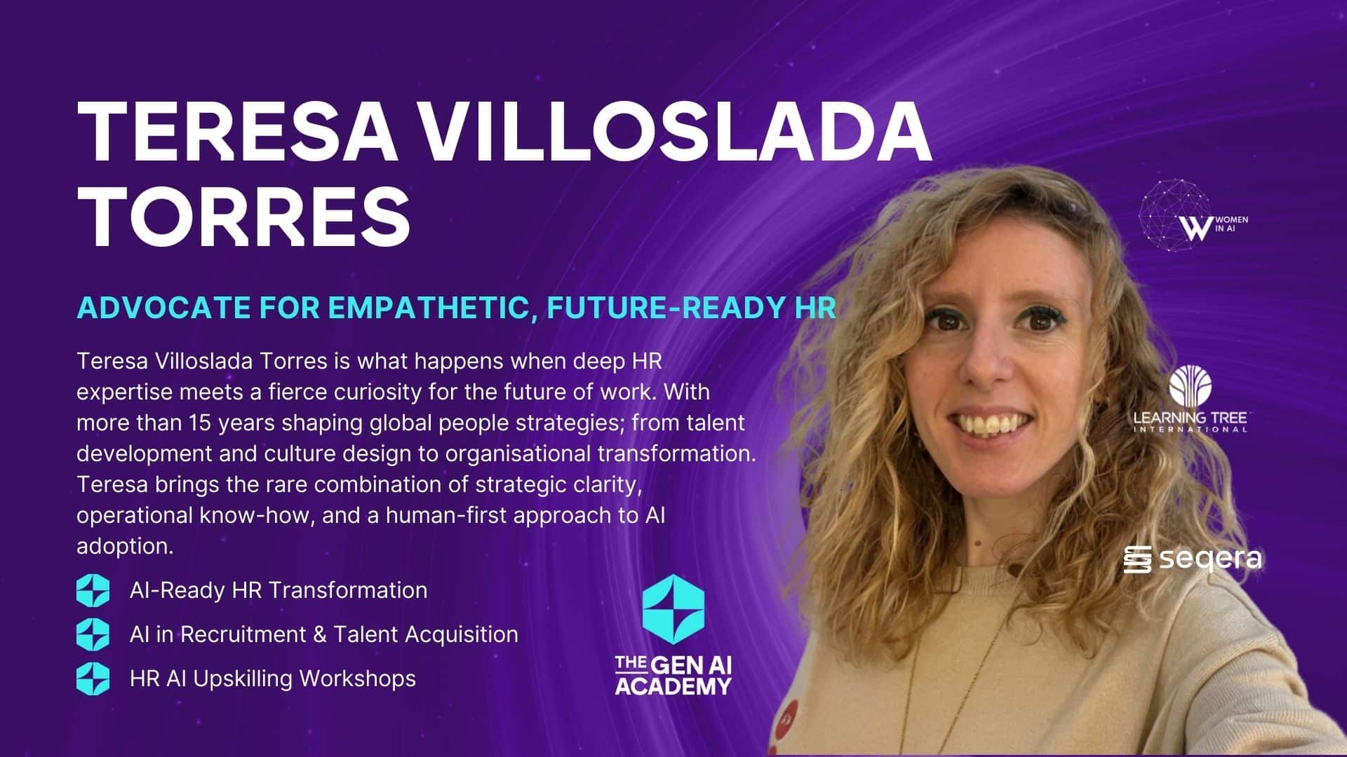 Teresa Villoslada Torres è il risultato dell'incontro tra una profonda competenza nel campo delle risorse umane e una forte curiosità per il futuro del lavoro. Con oltre 10 anni di esperienza nel settore tecnologico, Teresa ha contribuito allo sviluppo dei talenti, alla progettazione della cultura aziendale e alla trasformazione organizzativa. Teresa apporta una rara combinazione di chiarezza strategica, know-how operativo e un approccio incentrato sull'uomo all'adozione dell'intelligenza artificiale.